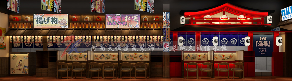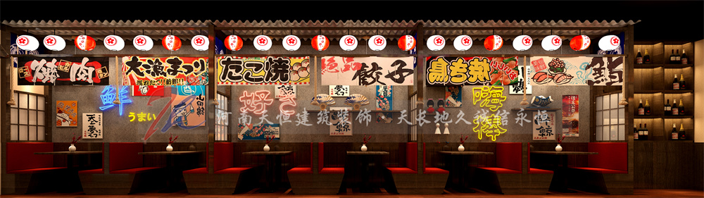 本案以傳統(tǒng)居酒屋的風(fēng)格為基調(diào),提取部分建筑結(jié)構(gòu)的元素,以現(xiàn)代的裝飾手法去重新演繹,掛著紅色的燈籠,結(jié)繩的暖簾,從傍晚直到深夜,陪伴著稍顯疲憊的都市男女,讓人們在這里褪下面具,卸下防備,輕松隨意地喝酒聊天享用的美食;來往的客人、旅人、陌生人,一幕幕人生百態(tài)于眼前展開、收起、珍藏,在這里能看到最真實(shí)的世像百態(tài),這些人事與美味,簡單平凡,卻蘊(yùn)藏著咀嚼不完的層層美味...